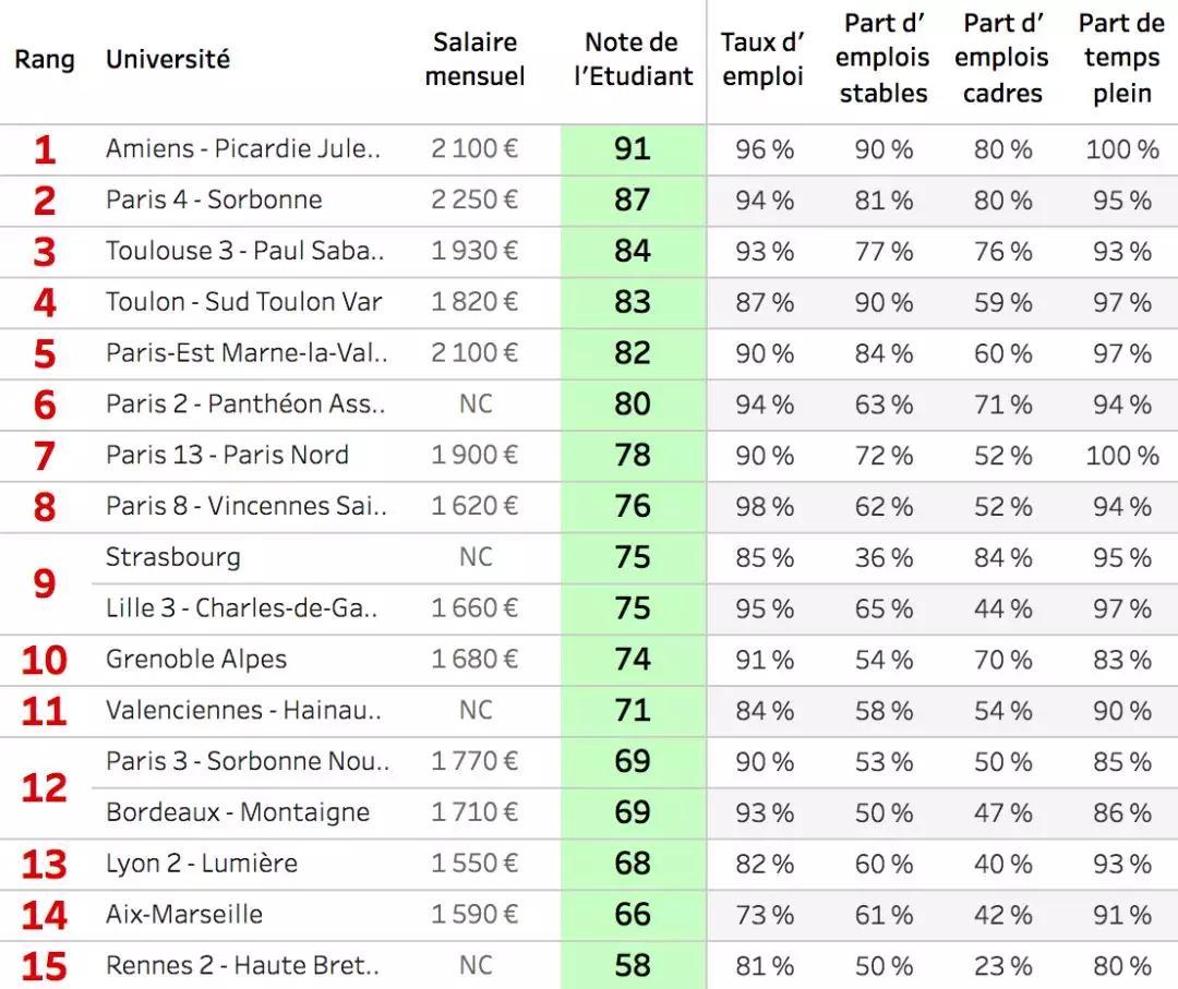 【法国著名大学】 TOP5名校 1、Ecole Polytechnique,综合理工学校 也称为X.最好的工程师学校,也是法国名校之首.考入X的学生不但不用交学费,还享受每月 1300欧元的见习军官待遇,每年法国国庆的总统阅兵仪式,X的学生走在所有人的前边.X每年 毕业400名法国学生和100名外国学生,其毕业/生垄断了半数以上的法国主要企业总裁的位置,有人这么说If you are graduated from X,every door is open for you. 2、Science Po,巴黎政治学院 欧洲最好的政治学院.几乎欧洲所有的国家元首都曾在Science Po学习,奥朗德,希拉克都是这里毕业的. 3、ENS.巴黎高等师范学院 每年招生200人,报考20000人.法国最著名的文理科院校以及研究机构,这里面就出现了 很多你高数书里既爱又恨的人物。 4、Mines,巴黎高等矿业学院 真心不是采矿的,虽然当年拿破仑是初衷是为了培养采矿开矿的人才的,出了几个诺贝尔 以及法国500强公司的CEO。最有意思的是MINES和Ecole Polytechnique每年在一届学生中排出成绩最好,潜力最佳的十名学生,组成corps de mines,也号称法国政府未来的智囊团,这些学生能力足以顶半边天,重点是衣食无忧,经常是什么经济部长做班主任,前途一片光明。 5、HEC 法国高商排名第一.英国泰晤士报评为欧洲最好的商学院.要注意这些学校的第一学历是无敌的,但颁发的其他学历没有同样的含金量.法国非常注重学校的排名,同样的公司,同样的职位,薪水都会因为毕业学校不同而不同.有些要求高的公司只招收Groupe A(8所)工程师学校以及Top5高商的毕业生,而各公司高层的职位可以说非名校学生不能染指,所以很多法国人说他们的职业生涯在20岁的那场考试中已经决定. 当然还有一些知名的学校,比如巴黎中央理工central,巴黎路桥学院,巴黎高等艺术工艺学院,巴黎电信学院telecom等。 整体来说大学校中3年制的比5年制的有更大的优势,因为3年的招生主源是prepa后的学生,而这些bac后能上prepa的都基本可以进insa lyon,utc等5年制不错的学校,3年制对他们又是一个筛选的过程,更为精英吧。 法国的顶尖大学 第1位、巴黎高等师范学校(世界大学排名第43位;欧洲大学排名第11位); 第2位、巴黎综合理工大学(世界大学排名第59位;欧洲大学排名第16位); 第3位、巴黎第六大学(世界大学排名第131位;欧洲大学排名第50位); 第4位、里昂高等师范学院(世界大学排名第157位;欧洲大学排名第65位); 第5位、高等电力学院(世界大学排名第177位;欧洲大学排名第77位)。 另外34所位于法国的名校 1、巴黎政治大学(世界大学排名第220位); 2、格勒诺布尔大学(世界大学排名并列第236位); 3、巴黎第十一大学(世界大学排名第242位; 4、巴黎第一大学(世界大学排名第269位); 5、巴黎高科桥路学院(世界大学排名并列第270位); 6、巴黎第四大学(世界大学排名并列第293位); 7、斯特拉斯堡大学(世界大学排名第303位); 8、巴黎第七大学(世界大学排名并列第305位); 9、卡尚高等师范学院(世界大学排名第330位); 10、巴黎第九大学(世界大学排名并列第355位); 11、蒙彼利埃大学(世界大学排名第381位); 12、艾克斯-马赛大学(世界大学排名第411-420位); 13、巴黎第五大学(世界大学排名441-450位); 14、里昂国立应用科学学院(世界大学排名第451-460位); 15、里昂第一大学(世界大学排名501-550位); 16、波尔多大学(世界大学排名501-550位); 17、图卢兹第三大学(世界大学排名501-550位); 18、里尔第一大学(世界大学排名551-600位); 19、巴黎第二大学(世界大学排名551-600位); 20、尼斯大学(世界大学排名601-650位); 21、雷恩第一大学(世界大学排名651-700位); 22、洛林大学(世界大学排名第751-800位); 23、南特大学(世界大学排名第751-800位); 24、里昂第二大学(世界大学排名第751-800位); 25、图卢兹第一大学(世界大学排名第751-800位); 26、里尔第三大学(世界大学排名第801-1000位); 27、卡昂大学(世界大学排名第801-1000位); 28、塞吉-蓬图瓦兹大学(世界大学排名第801-1000位) 29、普瓦捷大学(世界大学排名第801-1000位); 30、里昂第三大学(世界大学排名第801-1000位); 31、里尔第二大学(世界大学排名第801-1000位); 32、巴黎第十大学(世界大学排名第801-1000位); 33、蒙彼利埃第三大学(世界大学排名第801-1000位) 34、图卢兹第二大学(世界大学排名第801-1000位)。